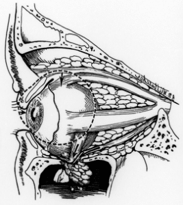 Εκτός από τις επιπλοκές, σχετικά με την ένθεση μοσχεύματος μπορεί να εμφανιστεί εκτρόπιο (1 περίπτωση στις 200), σύσπαση του κάτω βλεφάρου (1 περίπτωση στις 280), ενώ η απόρριψη του μοσχεύματος αναφέρεται πολύ σπάνια (1 περίπτωση στις 550). Η πιο σοβαρή επιπλοκή είναι η τύφλωση είτε από μετεγχειρητική αιμορραγία είτε από άμεση ή έμμεση τρώση του οπτικού νεύρου. Είναι, όμως, εξαιρετικά σπάνια (1 περίπτωση στις 1500 επεμβάσεις) .